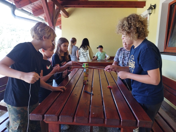 Druhý den dopoledne pokračoval program dalšími aktivitami zaměřenými na spolupráci, komunikaci a budování důvěry. V poledne žáci vyrazili zpět do školy na oběd – unavení, ale plní dojmů a nových přátelství.