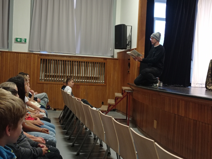 Žákům a žákyním druhého stupně byla představena kniha Mikaela Olliviera Život k sežrání.