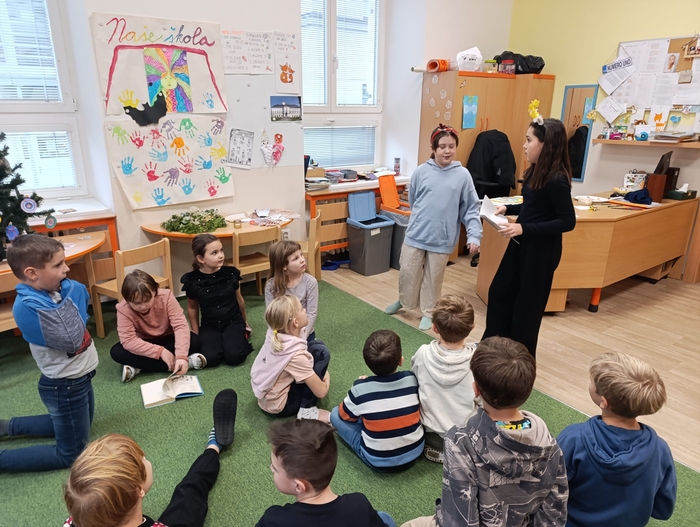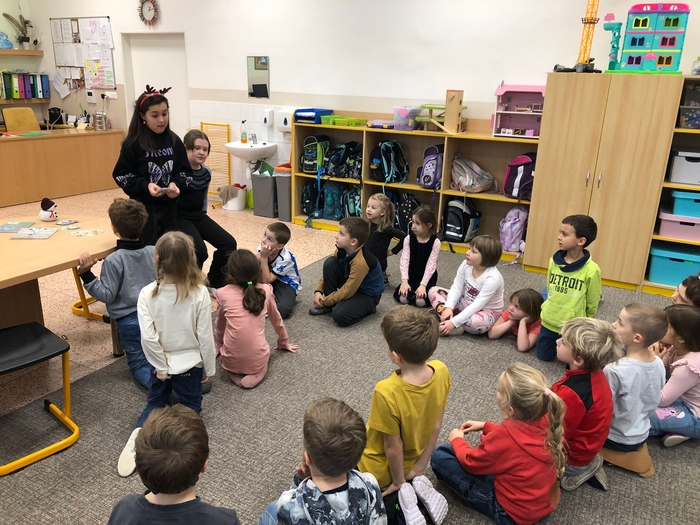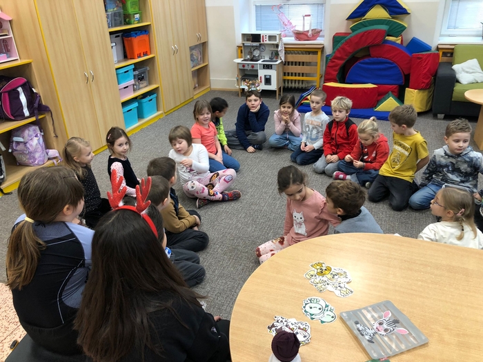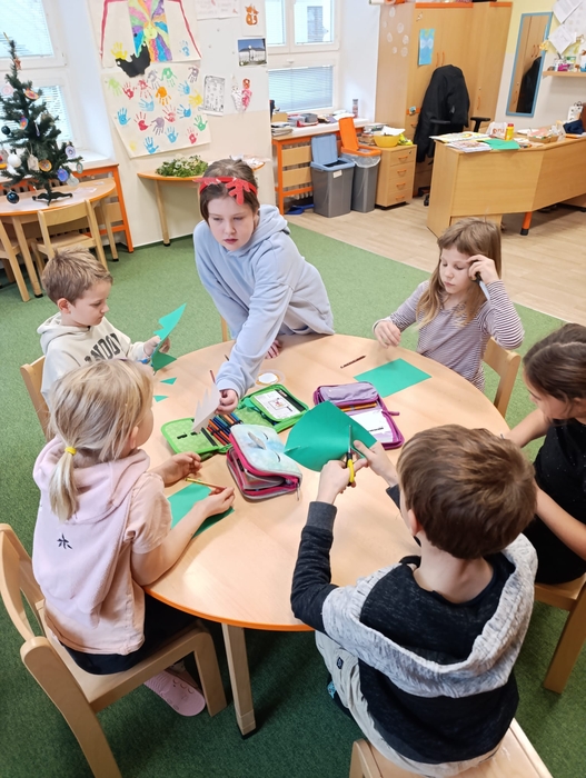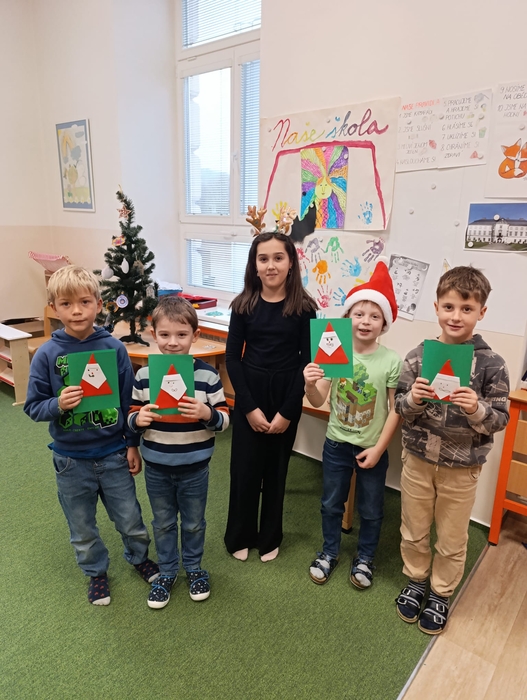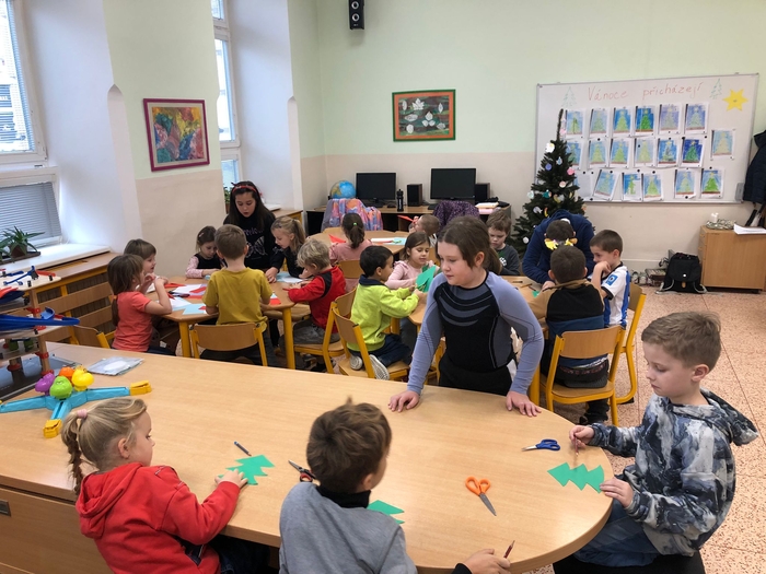 Vytvořily společně s dětmi vánoční přání a vánoční stromeček. Je pro nás velmi důležité udržovat pozitivní a přátelské vztahy mezi žáky napříč ročníky. Děti si společné tvoření užily, byla to příjemná změna a navázání nových přátelství. Budeme se těšit na další milou návštěvu. Děkujeme moc děvčatům za jejich odhodlání, přípravu a realizaci.